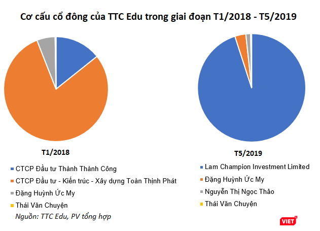 Đằng sau sự thay đổi ở vị trí thượng tầng, TTC Edu cũng cho thấy lịch sử cơ cấu cổ đông có nhiều biến động.