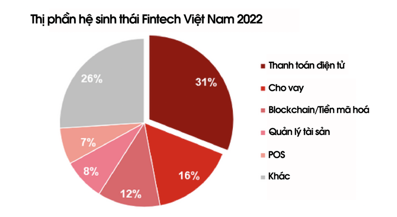 Theo phân khúc, các công ty khởi nghiệp fintech Việt Nam có thể được chia thành 5 ngành dọc: thanh toán điện tử, cho vay, quản lý tài sản (WealthTech), công nghệ bảo hiểm (InsurTech) và công nghệ chuỗi khối/tiền mã hóa (Blockchain/Crypto).
