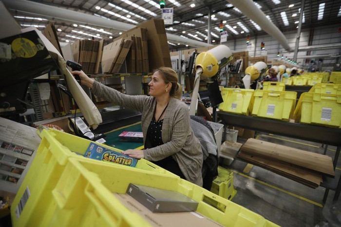 Mỗi nhân viên phải đóng 300-400 gói hàng trong một giờ. Ảnh: Getty Images.