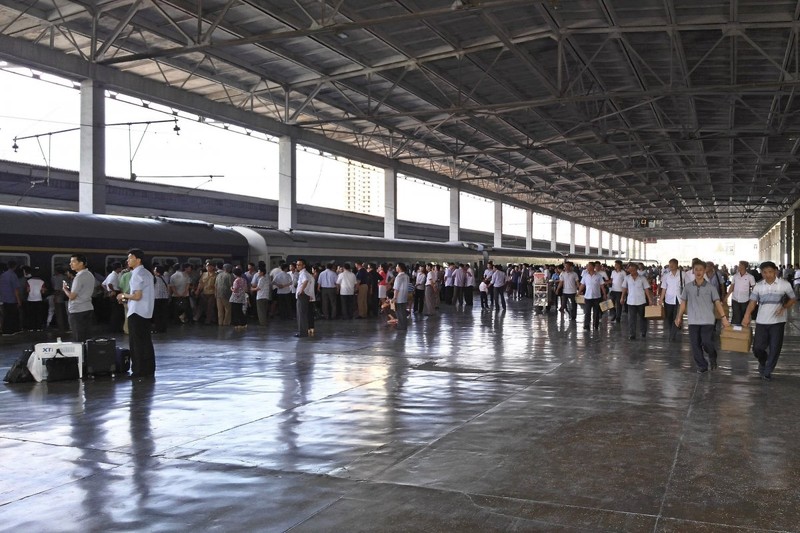 Ảnh lãnh tụ được treo cao trên nhà ga xe lửa
