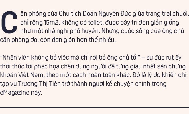 Nằm ở lầu 3, phía sau cánh cửa gỗ không bao giờ khóa là căn phòng của bầu Đức, có diện tích rất nhỏ, chắc cỡ 15m2. Vị trí của nó là ngay đầu cầu thang, khiến tôi thắc mắc vì sao người đàn ông từng giàu có nhất Việt Nam (theo giá trị cổ phiếu trên sàn chứng khoán) lại chọn căn phòng vừa có thể gọi là chính, lại có thể gọi là rất phụ này để nghỉ ngơi?