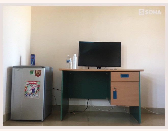 Trương Thị Tiên: Đơn giản vậy thôi chị, không có gì hết. Chỉ có tivi với cái tủ đồ trống cho ổng để quần áo, bàn làm việc thêm tủ lạnh nhỏ xíu với máy lạnh vậy thôi. Hôm nào chú qua mình có bỏ mấy chai nước lạnh vô. Ổng ưng thì uống, không thì ổng để đó. Rồi vậy thôi chứ không có gì hết.
