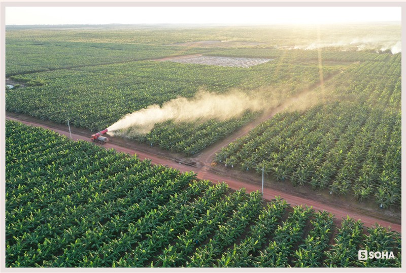 Hôm sau, chúng tôi bắt đầu hành trình khám phá vườn chuối vào lúc 6h sáng và phải sử dụng ô tô, bởi không ai có thể đủ sức đi bộ ra vườn chuối với tổng diện tích lên đến hơn 8.000 ha. Công tơ mét trên xe cho thấy, đến hết ngày chúng tôi đã đi được 175km trong tổng số 500km đường giao thông nội bộ ở trang trại này.