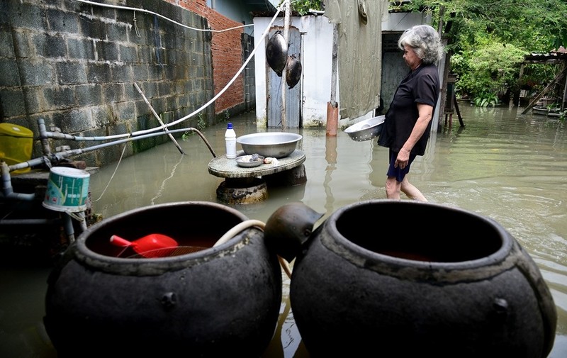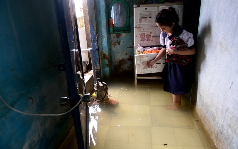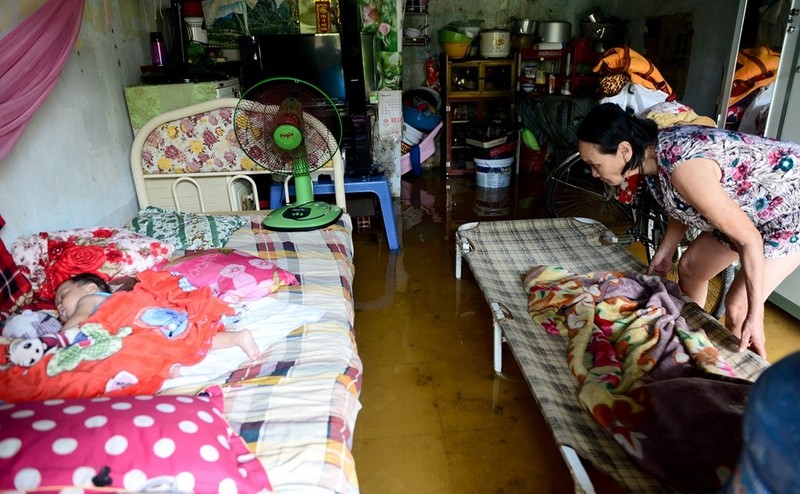 Nước lụt không chỉ cản trở sinh hoạt mà còn kèm theo rác thải nên người dân rất dễ nhiễm bệnh
