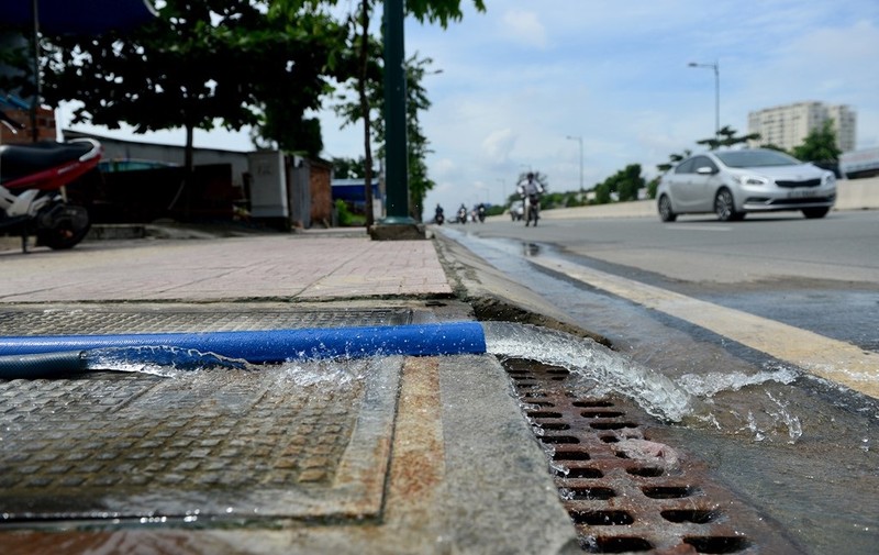 Cộng thêm sự "trợ lực" từ máy bơm của các nhà dân