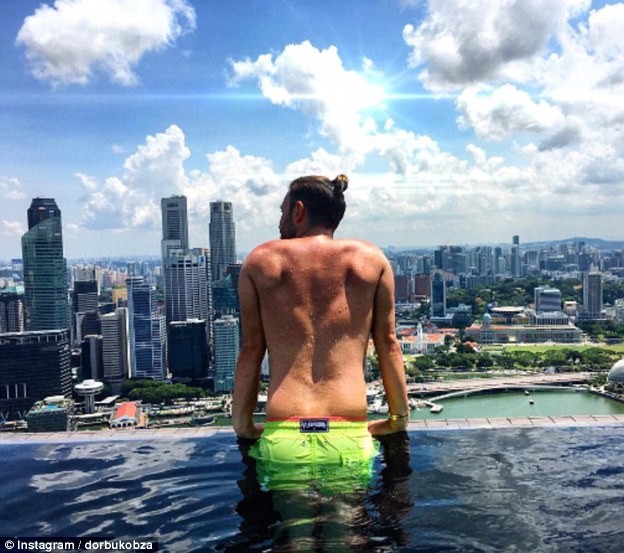Dor Bukobza tại bể bơi trên sân thượng khách sạn Marina Bay Sands, Singapore