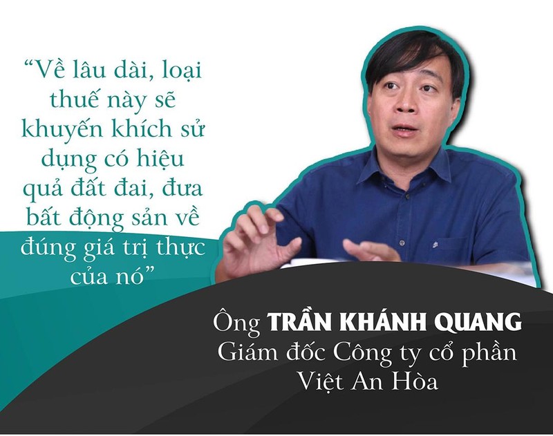 – Ông Trần Khánh Quang: Nghị quyết 18 là một chính sách đúng nhằm làm lành mạnh thị trường trong đó vấn đề lớn nhất là sở hữu đất đai và tránh đầu cơ đất đai. Theo tôi nghĩ, việc sở hữu đất đai phải có sự chia sẻ với xã hội một cách tương xứng về những giá trị mà mình hưởng lợi từ hạ tầng. Sở hữu đất có vị trí đẹp là do hạ tầng xã hội mang lại chứ không phải do tự bất động sản đó tạo ra giá trị tài sản lớn.