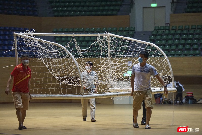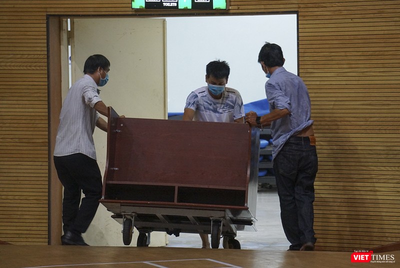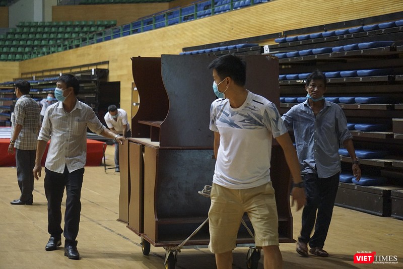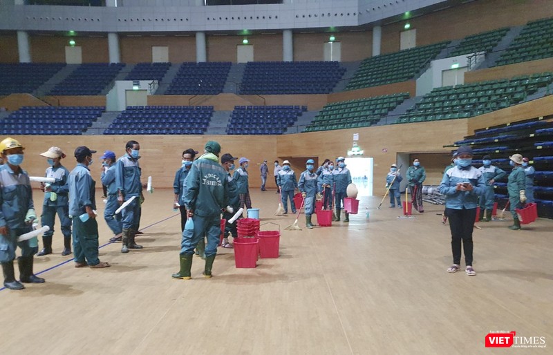 Sau chỉ đạo của Thành ủy Đà Nẵng về việc trưng dụng Cung thể thao Tiên Sơn (Đà Nẵng) làm bệnh viện dã chiến ứng phó với dịch COVID-19, sáng ngày 1/8, lực lượng công nhân đã có mặt thu dọn đồ đạc, vệ sinh toàn bộ bề mặt sân và các tầng để phục vụ việc xây dựng bệnh viện dã chiến theo phương án.