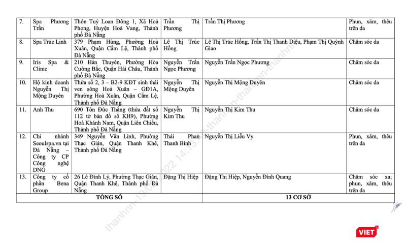 Danh sách các cơ sở thẩm mỹ đủ điều kiện hoạt động trên địa bàn TP Đà Nẵng |