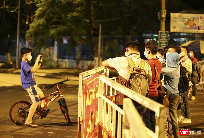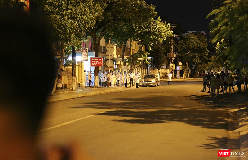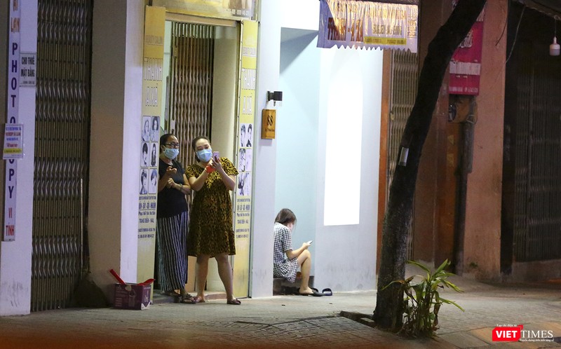 23h45, lác đác có vào người dân ra hiên nhà đứng chờ thời khắc khu vực được tháo dỡ lệnh phong tỏa