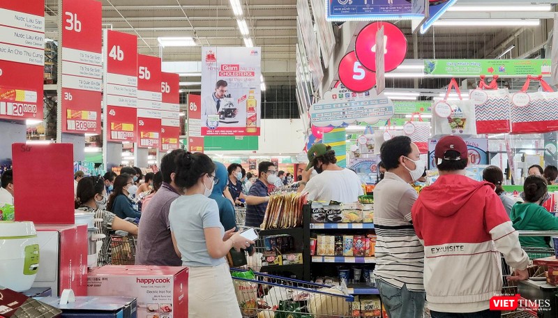 VietTimes xin gửi đến bạn đọc một số hình ảnh người dân đổ xô đi mua nhu yếu phẩm tại một số siêu thị, cửa hàng tiện lợi trên địa bàn (Ảnh VL-XT):