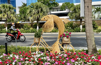 Đường hoa biển Đà Nẵng 2024 đẹp ngỡ ngàng với tạo hình cá đi xe đạp