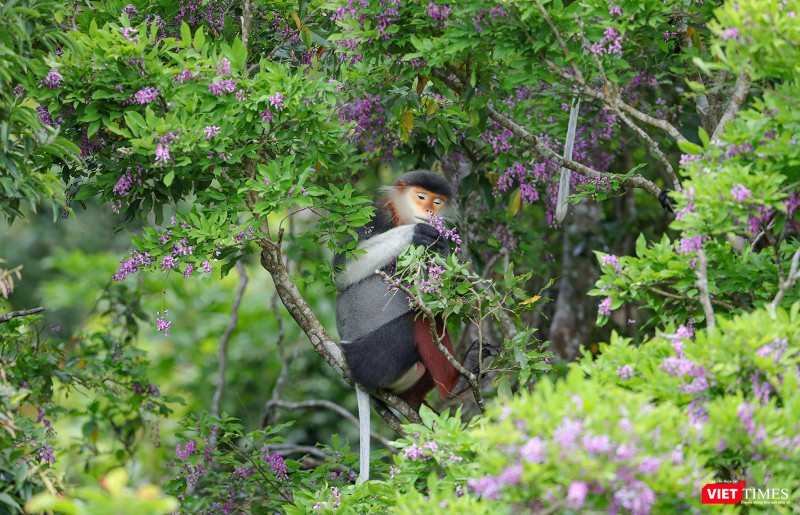 Để bạn đọc cảm nhận được vẻ đẹp khó cưỡng này, VietTimes xin gửi đến bạn đọc những hình ảnh của voọc chà vá chân nâu trên cây hoa thàn mác tím ở Sơn Trà mà nhà báo Hồ Xuân Mai ghi nhận được: