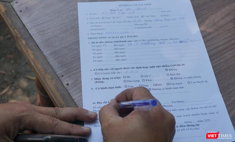 Thực hiện khai báo y tế bằng tờ khai viết tay |