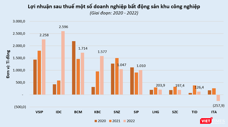 Tuy vậy, thống kê của VietTimes cho thấy, mức lợi nhuận ròng của VSIP trong năm 2022 vẫn xếp sau Tổng công ty Idico - CTCP (Mã CK: IDC).