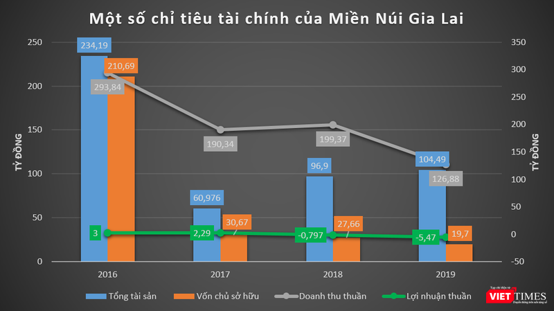 Dữ liệu của VietTimes cho thấy, trong 4 năm trở lại đây, doanh thu của Miền Núi Gia Lai luôn được duy trì trên mức trăm tỷ đồng mỗi năm, tuy nhiên khoản lợi nhuận chỉ đạt vài tỷ đồng, thậm chí là thua lỗ.