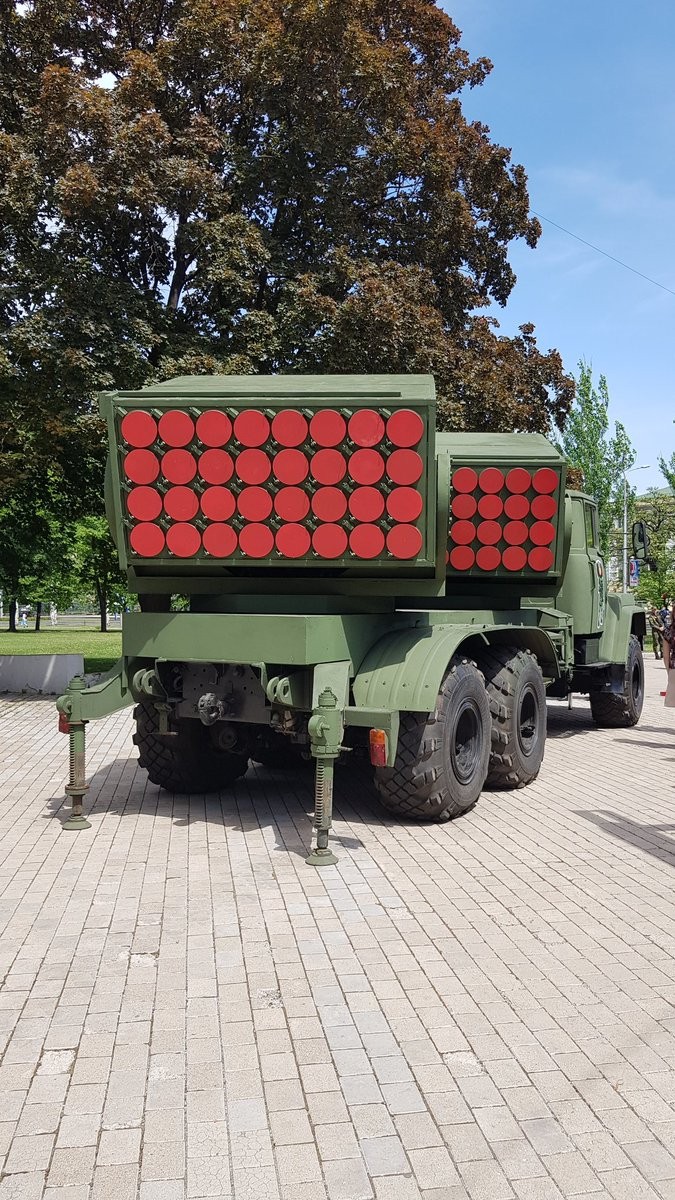Tổ hợp pháo phản lực "Snowflake" và "Cheburashka" được lực lượng dân quân Donesk trưng bày ngày 08.05.2018. Vũ khí được phát triển theo nghị định của lãnh đạo nước Cộng hòa Alexander Zakharchenko.