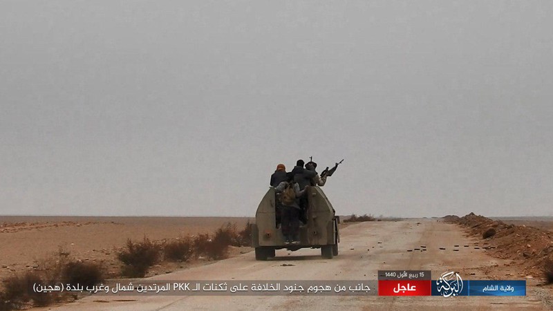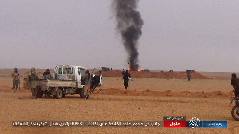 Cuộc tập kích thành công của IS vào chiến tuyến của Lực lượng Dân chủ Syria ở Deir Ezzor. Ảnh minh họa trang Amaq của IS