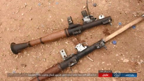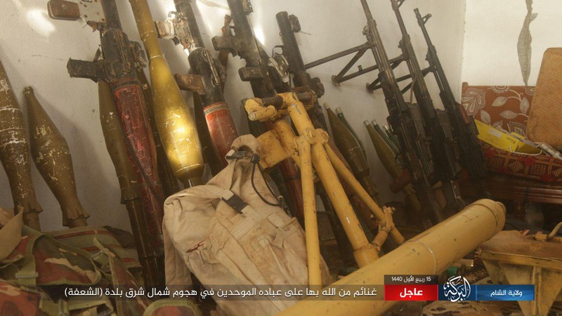 Những vũ khí trang bị của người Kurd vị IS chiếm được trong cuộc tấn công vào thị trấn al-Bahrah . Ảnh trang Amaq