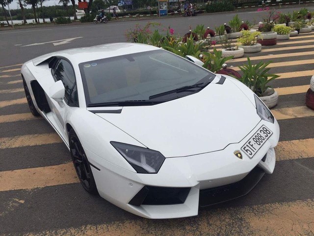 Đi cùng siêu xe Huracan vẫn là chiếc Lamborghini Aventador LP700-4 màu trắng quen thuộc. Ảnh: Trung Phong.