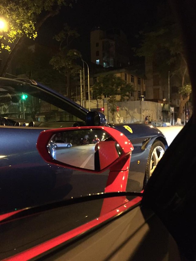 Sau khi làm các thủ tục đăng kiểm tại Hải Phòng, "siêu ngựa" xuất hiện trên phố Hà thành vào chiều ngày 19/6 cùng các siêu xe khác. Tính đến nay, tại Việt Nam đã có 3 chiếc Ferrari F12 Berlinetta lăn bánh trên phố và một chiếc đang nằm chờ thông quan tại cảng VICT, Sài Gòn. Ảnh: Nguyễn Đức.