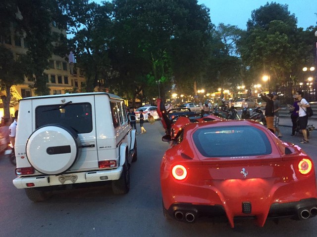 Còn với đoàn siêu xe tại Hà Nội cũng không kém cạnh khi có sự xuất hiện của những siêu xe hàng hot mới cập bến thị trường Việt Nam như Ferrari F12 Berlinetta, Lamborghini Aventador LP700-4 mui trần, Ferrari California T hay Mercedes G63 AMG.