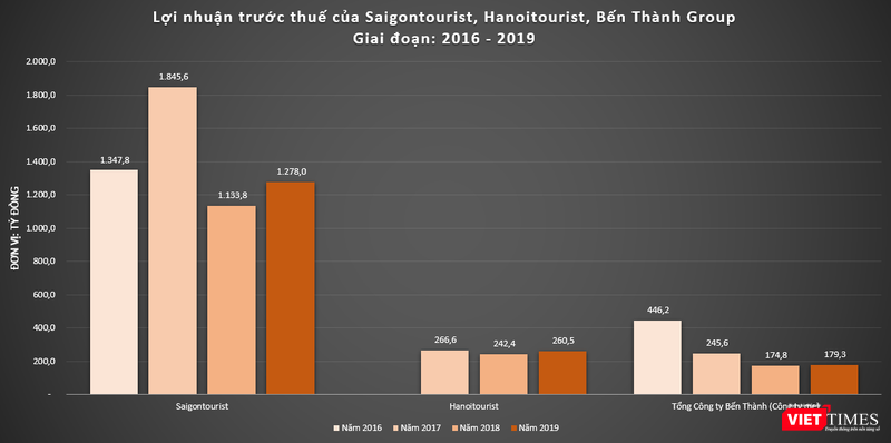 Dữ liệu của VietTimes cho thấy, Saigontourist tỏ ra vượt trội về quy mô tài sản và kết quả kinh doanh so với Hanoitourist và Benthanh Group.