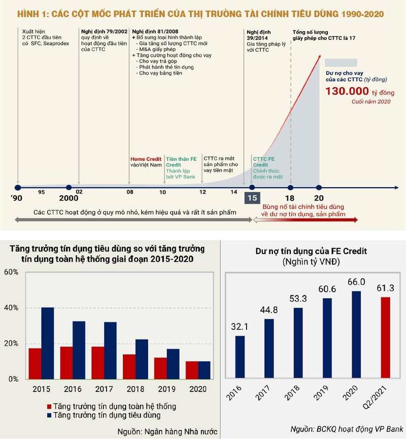 Trước tiên, cần nhìn lại bức tranh tổng thể về quá trình hình thành và phát triển của nhóm ngành tài chính tiêu dùng từ các công ty tài chính.