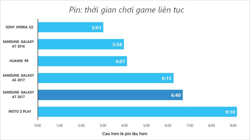 Chơi game giả lập trên GFX Bench liên tục ở điều kiện độ sáng 70%, tính từ lúc pin đầy đến khi còn 10%.