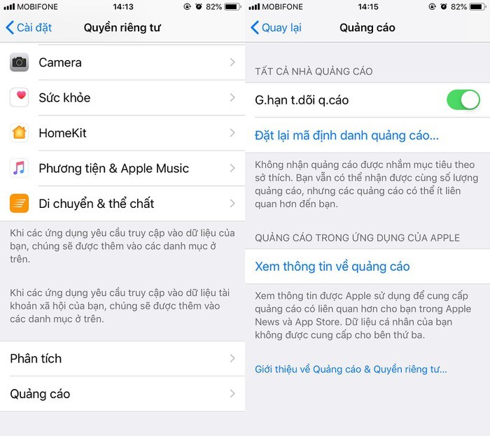 Để tránh bị thu thập vị trí, bạn hãy truy cập vào mục Settings (cài đặt) > Privacy (quyền riêng tư) > Advertising (quảng cáo) và kích hoạt tùy chọn Limit Ad Tracking (giới hạn theo dõi quảng cáo), nhấn Don’t allow (không cho phép) nếu xuất xuất hiện hộp thoại nhắc nhở.
