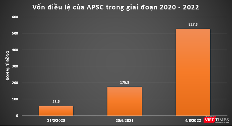 Cập nhật tới tháng 8/2022, quy mô vốn điều lệ của APSC đạt 527,5 tỉ đồng, cao gấp 9 lần so với thời điểm cuối năm 2020.