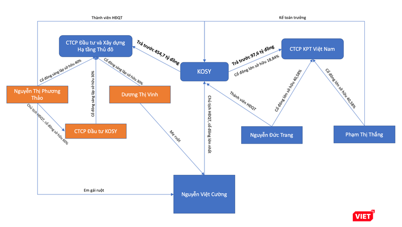 Cần lưu ý là Công ty CP Đầu tư KOSY là một pháp nhân độc lập với Công ty CP KOSY, cái tên "KOSY" trong hai pháp nhân này cũng phần nào nói lên sự liên quan. Đầu tư KOSY do bà Thảo - em gái ông Cường - là Chủ tịch HĐQT kiêm người đại diện theo pháp luật.