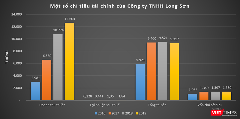 Dữ liệu của VietTimes cho thấy, trong giai đoạn 2016 - 2019, doanh thu của Long Sơn tăng trưởng rất ấn tượng và đạt đỉnh vào năm 2019 với 12.604 tỉ đồng, gấp 4,2 lần so với năm 2016. Tuy nhiên, công ty chỉ báo lãi sau thuế năm 2019 vỏn vẹn 1,84 tỉ đồng; các năm 2016 - 2018, chỉ tiêu này cũng chỉ dao động từ 0,228 - 1,35 tỉ đồng.