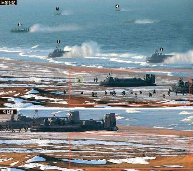 Bức ảnh một buổi tập trận của Triều Tiên được cho là có sự can thiệp bằng Photoshop. Nguồn: Popsci