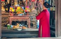 Mùng 1 Tết Nguyên đán Ất Tỵ, hàng nghìn người đến đền Ngọc Sơn (Hoàn Kiếm) lễ đầu năm.