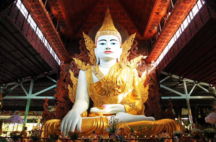 Bức tượng Phật ngồi đặc biệt này nằm ở Ngahtatgyi Paya, một ngôi chùa cổ nổi tiếng ở thị trấn Bahan, Yangon. Đức Phật mặc áo choàng mạ vàng với những đồ bảo vệ như khiên, cầu vai cũng mạ vàng, tạo cảm giác như đang mặc áo giáp. Nguyên mẫu ban đầu của bức tượng cao 6.2m, được quyên tặng bởi Hoàng tử Minyedeippa vào năm 1558. Đến năm 1900, một bức tượng khác, chính là bây giờ, cao 13.9m tính cả bệ và 9.1m không tính bệ, rộng 14m được dựng lên. Nếu bạn đến Myanmar và hỏi về Đức Phật mặc áo giáp, hầu như mọi người đều có thể trả lời và chỉ đường cho bạn.