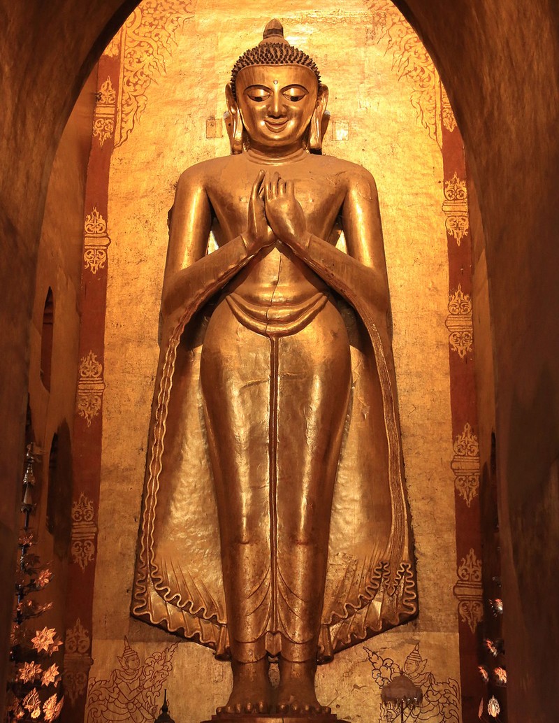 Ananda là một trong bốn ngôi chùa cổ còn sót lại ở Myanmar, được xây dựng theo phong cách Myanmar và Ấn Độ. Trong chùa có bốn pho tượng Phật đứng khá lớn. Trong đó có một pho tên là Kassapa trong tư thế Dharmachakra Mudra đang mỉm cười nhìn về phía nam. Phật Kassapa là người thứ ba trong năm vị Phật của Kalpa - Bhadda Kappa. Tượng Phật Kassapa có từ đầu thế kỷ 12 khi chùa Ananda mới được xây dựng, được bao phủ bằng lá vàng, nâng lên cao 2.5m trên ngai vàng. Một số ý kiến cho rằng tượng được đúc bằng đồng.