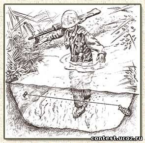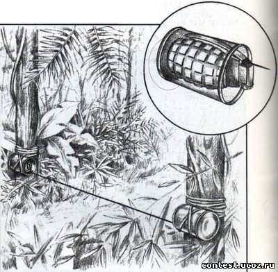 Bẫy lựu đạn: Quả lựu đạn mỏ vịt được rút chốt và nhét vào ống bơ sữa bò hoặc ống tre, buộc ngang trong bụi rậm hoặc ngâm trong vũng nước bùn lầy hay kênh, rạch. Khi lính thủy đánh bộ hoặc biệt kích, lính bộ binh đi qua gạt vào sơi dây, quả lựu đạn bung ra. Kết quả thật sự rất dễ hiểu đối với nhóm binh sĩ không may mắn.
