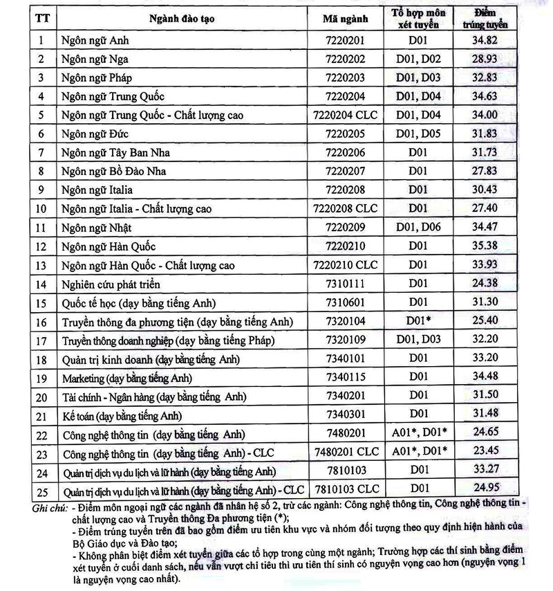 Cập nhật điểm chuẩn Đại học Hà Nội 2020 theo kết quả kỳ thi tốt nghiệp THPT 2020: