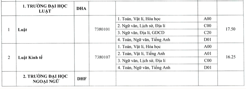 Năm nay, trường Đại học Luật - Đại học Huế tuyển sinh 665 chỉ tiêu, trong đó có 385 chỉ tiêu xét tuyển vào ngành Luật và 280 chỉ tiêu vào ngành Luật kinh tế. Trước đó, ngưỡng điểm sàn cho cả hai khối ngành là 16 điểm. Theo thông báo trên website chính thức, điểm chuẩn xét tuyển sẽ được nhà trường công bố trước 17h ngày 5/10.