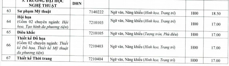 Năm nay, trường Đại học Nghệ thuật - Đại học Huế tuyển sinh 135 chỉ tiêu, trong đó có 94 chỉ tiêu xét tuyển theo kết quả thi tốt nghiệp THPT và 41 chỉ tiêu theo phương thức khác. Theo thông báo trên website chính thức, điểm chuẩn xét tuyển sẽ được nhà trường công bố trước 17h ngày 5/10.
