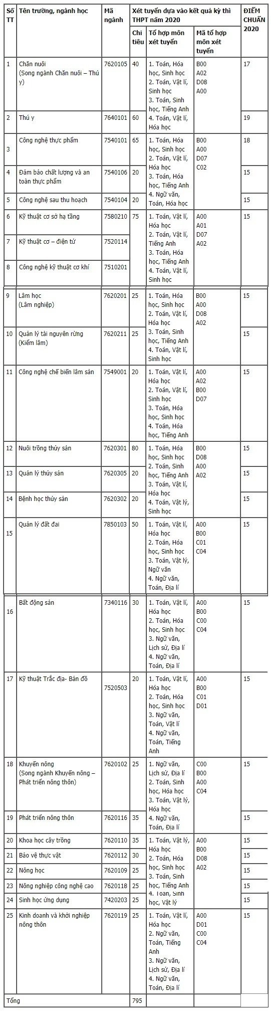 LIVE Điểm chuẩn trường Đại học Nông Lâm - Đại học Huế năm 2020
