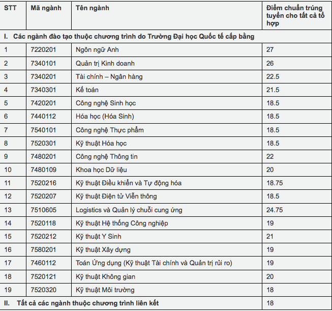 Trường ĐH Quốc tế (ĐH Quốc gia TP.HCM) vừa công bố điểm chuẩn xét tuyển từ kết quả thi tốt nghiệp THPT.