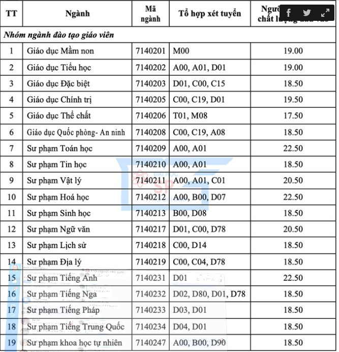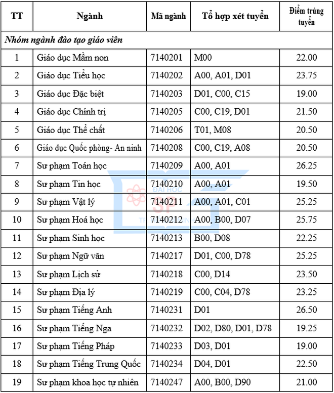 Năm 2020, trường Đại học Sư phạm TP.HCM nhận hồ sơ xét tuyển các ngành đào tạo giáo viên cao nhất là 22,5; thấp nhất 18,5. Nhóm ngành khác cao nhất 22, thấp nhất 18.