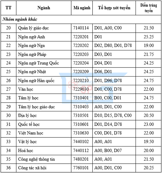>> Xem thêm điểm chuẩn đầu vào các trường Đại học