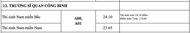 Cập nhật điểm chuẩn trường Sĩ quan Công binh 2020 theo kết quả thi tốt nghiệp THPT 2020: