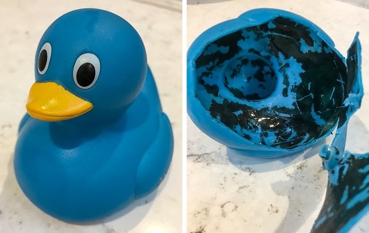 Đồ chơi cao su mà con bạn sử dụng có thể trông rất sạch sẽ. Nhưng đó chỉ là ở bên ngoài. Các nhà khoa học đã cảnh báo rằng các vi sinh vật nguy hiểm có thể sống bên trong những đồ chơi này vì môi trường ấm áp và ẩm ướt là một nơi tuyệt vời cho nấm mốc phát triển. Khi con bạn chơi với những vật dụng này trong bồn tắm, vi khuẩn có thể xâm nhập vào nước và dẫn đến các vấn đề về mắt, tai, và thậm chí là các vấn đề về dạ dày.