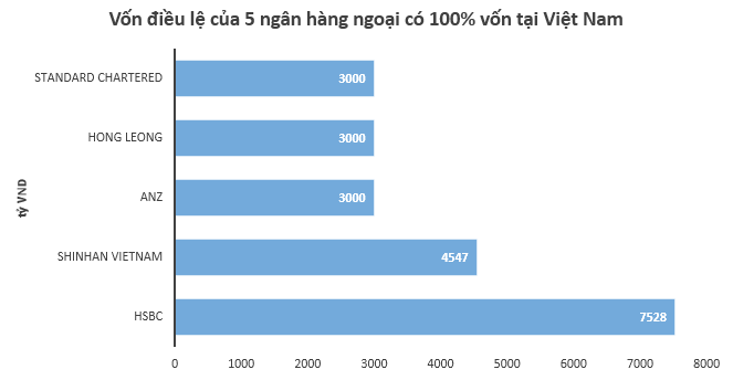 Theo số liệu NHNN, vốn điều lệ của HSBC Việt Nam đang là 7.528 tỷ đồng.