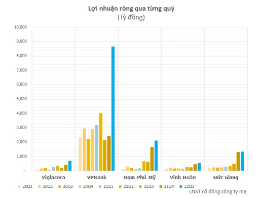 Một doanh nghiệp cũng có mức tăng trên 10 lần là Tổng Công ty Phân bón và Hóa chất Dầu khí (Đạm Phú Mỹ - HoSE: DPM). Cụ thể, DPM lãi trước thuế hơn 2.522 tỷ đồng, gấp 11,7 lần. DPM cho biết giá bán và sản lượng kinh doanh mặt hàng phân bón tăng mạnh trong quý 1/2022 dẫn đến doanh thu và lợi nhuận tăng tương ứng.