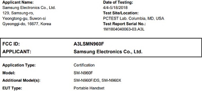 Samsung Galaxy Note 9 sẽ được phát hành tại Mỹ có thể có số model SM-N960U. Biến thể này hiện vẫn chưa xuất hiện tại FCC, nhưng điều này có thể sẽ sớm xảy ra. FCC đã nhận được Galaxy Note 9 với số model SM-N960F vào tháng 4/2018, tuy nhiên mãi đến hôm nay thiết bị mới đạt được chứng nhận của cơ quan này. Điều này cho thấy Samsung đã sẵn sàng cho kế hoạch ra mắt của chiếc phablet tốt nhất của mình.